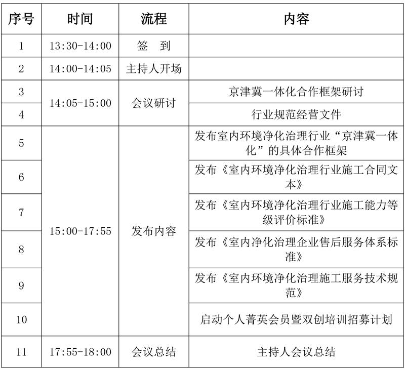 (1)關于室內環(huán)境凈化治理行業(yè)“京津冀一體化”的具體合作框架研討;